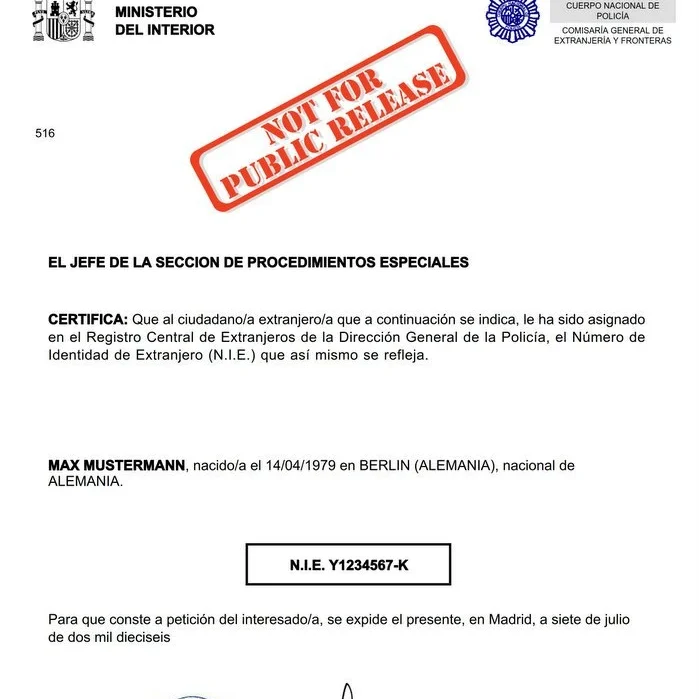 Das spanische Konsulat in Deutschland stellt keine NIE-Nummer aus, sondern nimmt lediglich den Antrag zur NIE-Nummer an. Die NIE-Nummer wird üblicherweise sodann per E-Mail zugesandt.